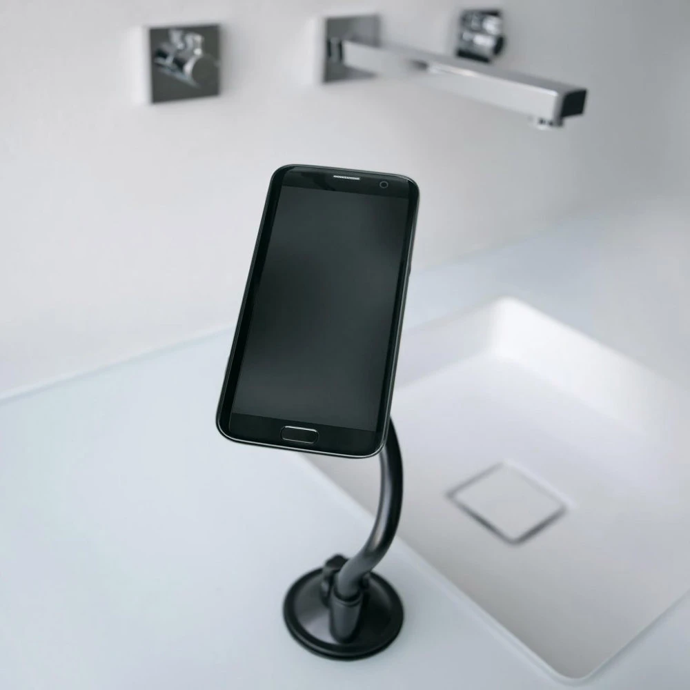Support flexible pour téléphone portable avec bras flexible – Que ce soit dans la voiture, dans la cuisine ou au travail : avec le support pour smartphone COMPIT FLEXX de SKS, le téléphone portable est toujours à portée de vue. Le système universel dispose d’un bras flexible qui se plie très facilement dans la position souhaitée.
