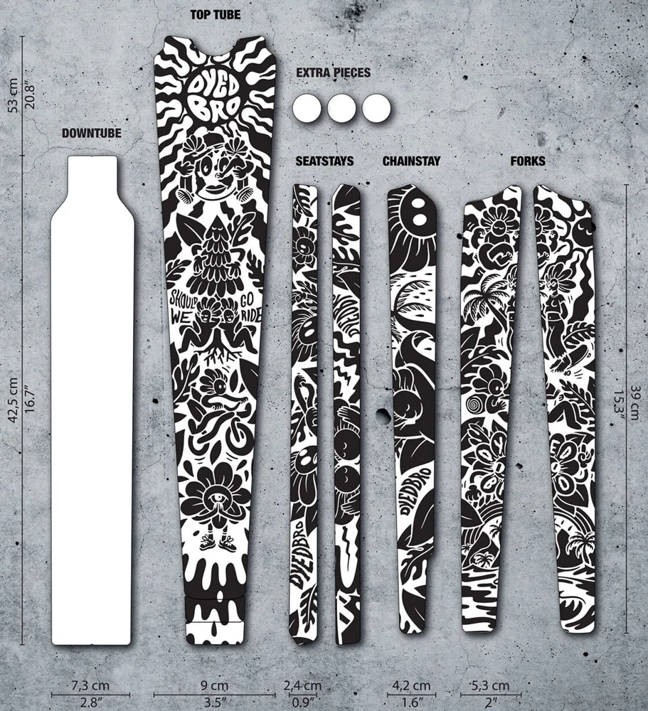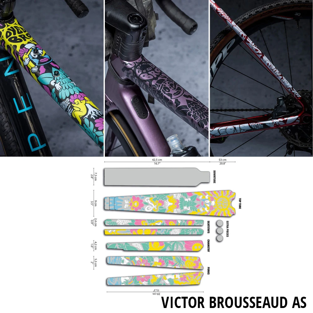Protection de cadre DYEDBRO spécialement conçue pour les vélos de Gravel, avec de nombreux superbes designs au choix. Une coupe spéciale des feuilles adhésives pour les gravel bikes signifie moins de déchets et un montage plus facile – et les avantages pour ton gravel bike sont une protection contre les velcros/bandes à bagages, les frottements de câbles et les dommages causés par les pierres et les rochers.