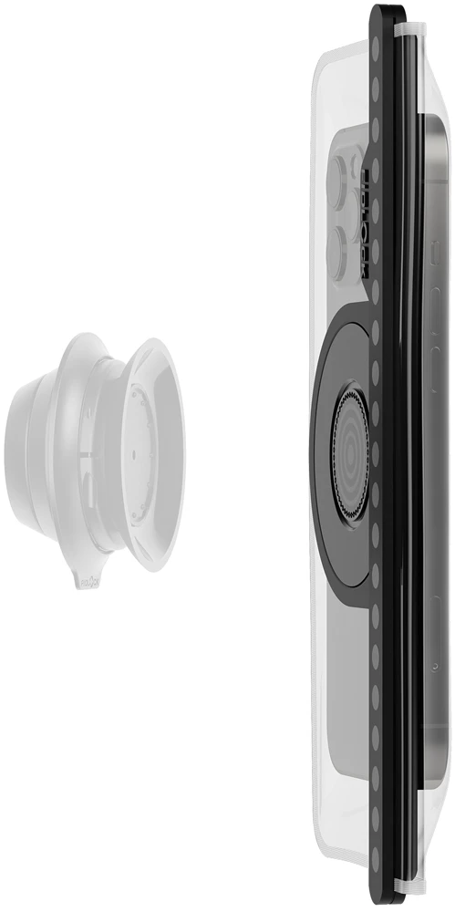 Grâce au principe breveté « just-let-go », l’étui se ferme automatiquement et de manière totalement hermétique. Pas de verrouillage manuel, de clic ou de poussée. Une fois enclenché sur la base VACUUM, le smartphone est protégé en toute sécurité, même sur les sentiers boueux. Le smartphone est parfaitement fonctionnel, même dans cet étui discret, grâce au matériau sensible au toucher et au matériau transparent qui permet de prendre des photos à travers l’étui.