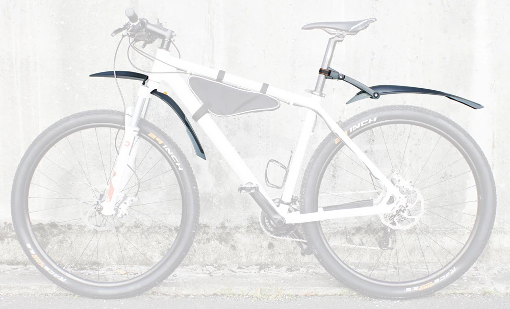 La planche à neige à 2 composants de haute qualité pour la roue arrière des vélos de montagne et de trekking. Grâce à la fixation rapide, le dirtboard peut être monté sur presque toutes les tiges de selle et ajusté de manière optimale à la roue grâce à la technologie à 2 articulations.