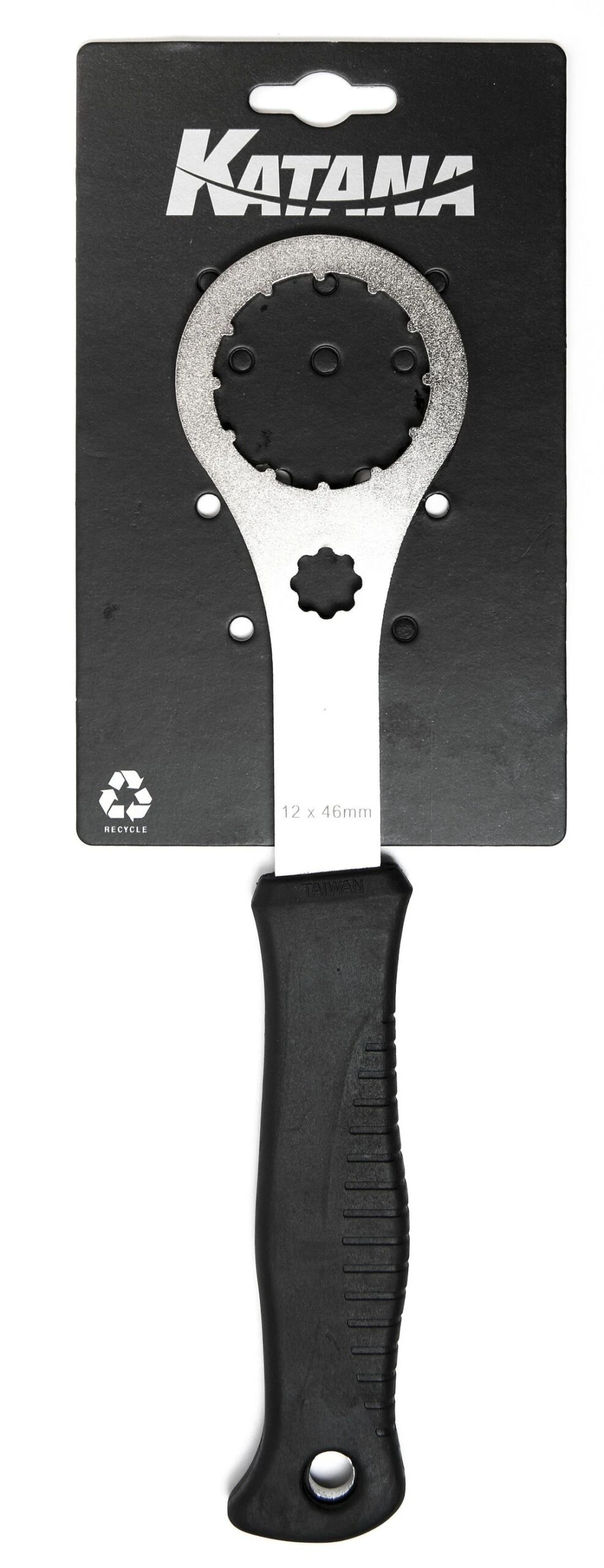 Cette clé à pédalier Katana permet de monter et de démonter facilement de nombreuses cuvettes de pédalier externes, qu’elles proviennent de SRAM, Rotor, Zipp, Race Face ou d’autres fabricants. L’acier trempé de cet outil lui confère une grande durabilité, ce qui en fait un outil idéal pour les ateliers professionnels.