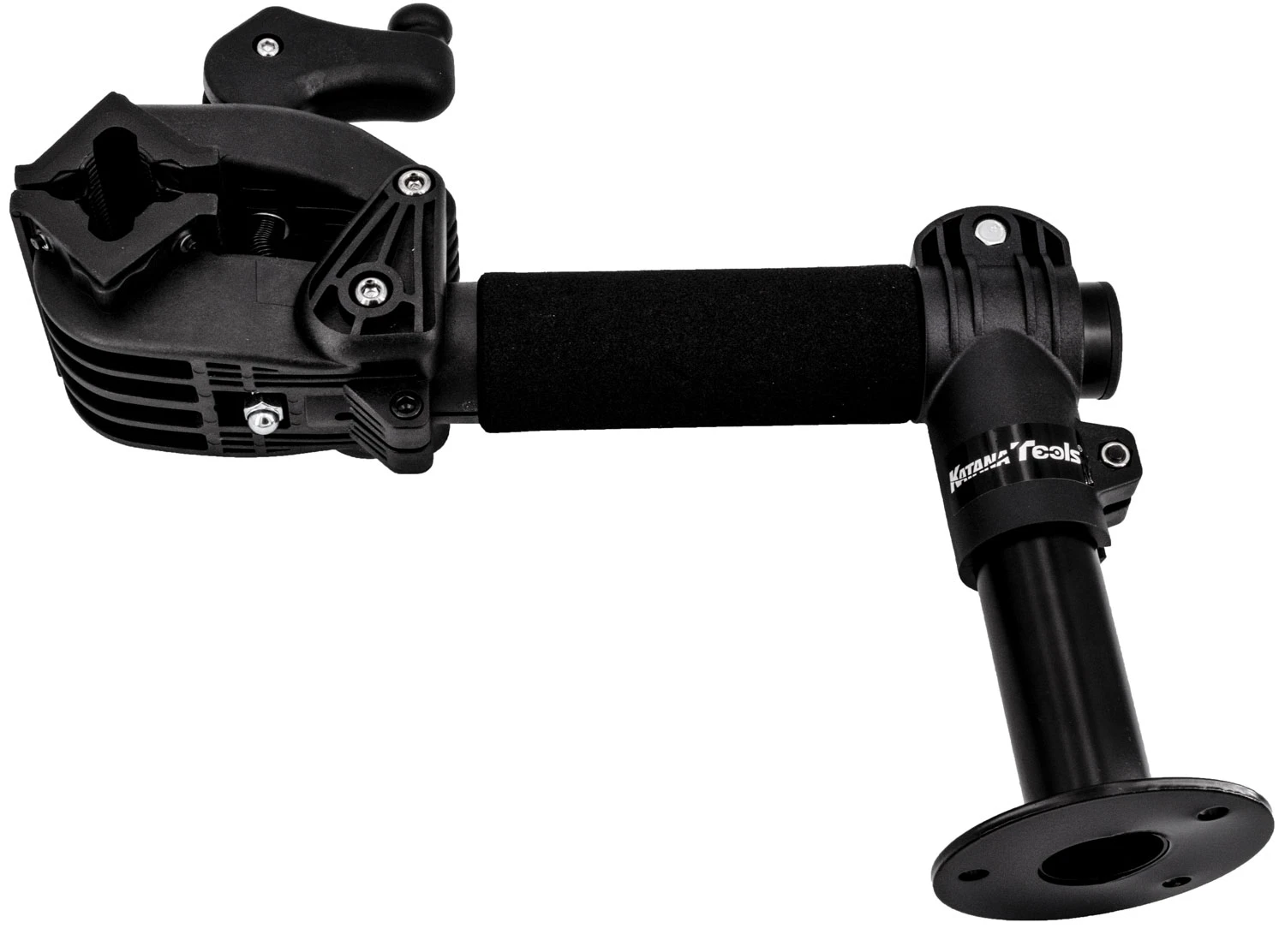 Le support de montage Katana est un complément pratique pour tout atelier de réparation de vélos. Il est conçu pour être fixé sur la surface d’une table ou d’un établi et dispose d’un bras librement réglable avec une pince de serrage fiable. Les travaux d’entretien et de montage peuvent ainsi être effectués de manière sûre et précise.