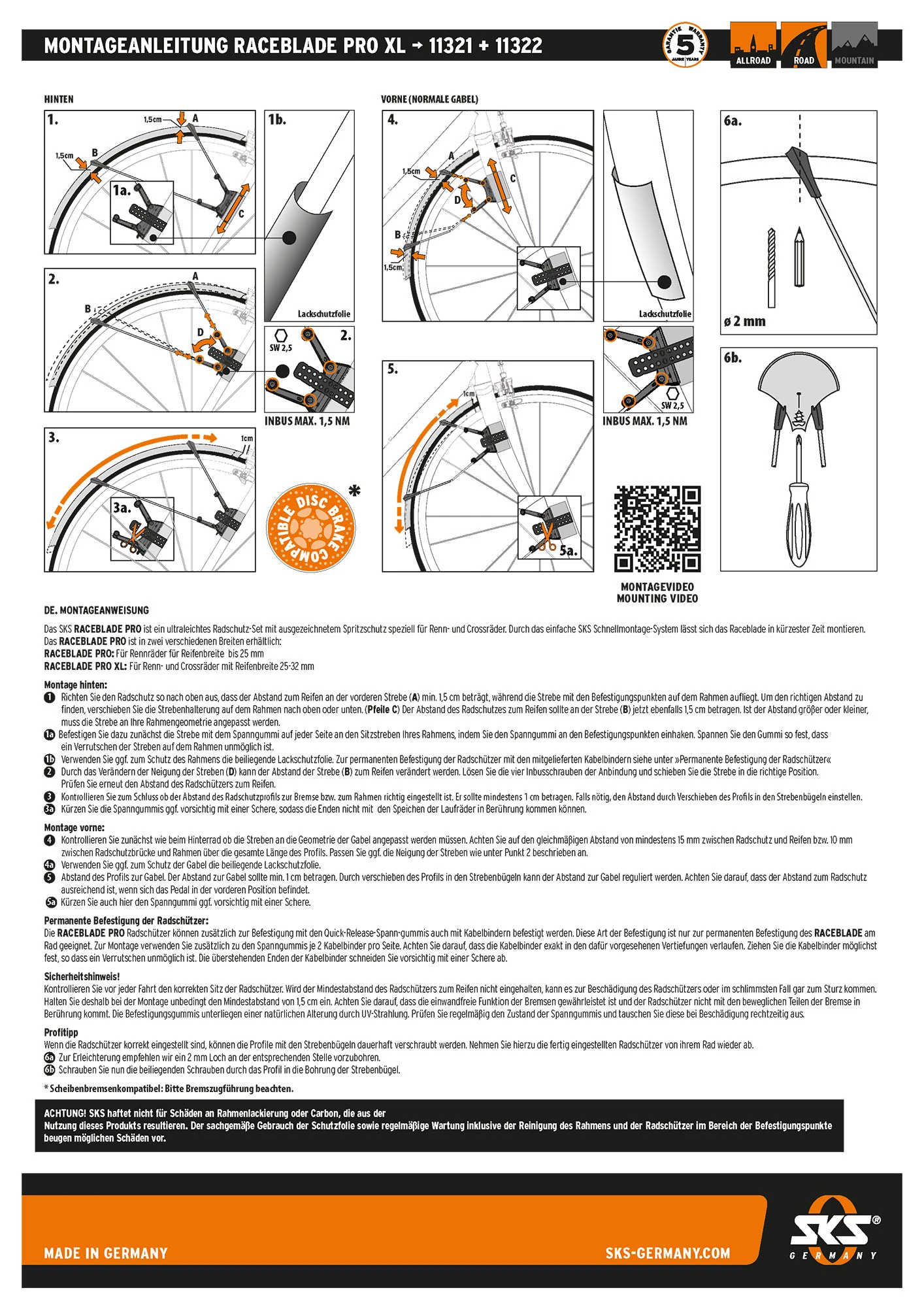 - 1 x jeu de garde-boue Raceblade Pro XL Black Matt