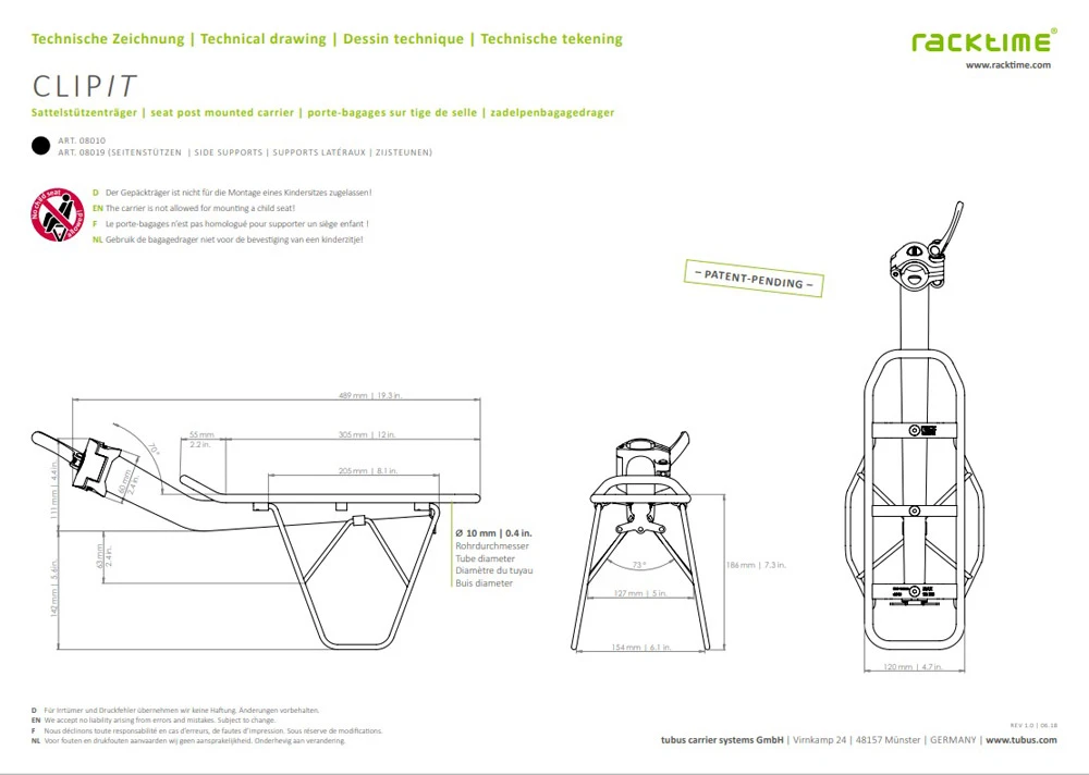 - 1 x support de selle Clip-it racktime