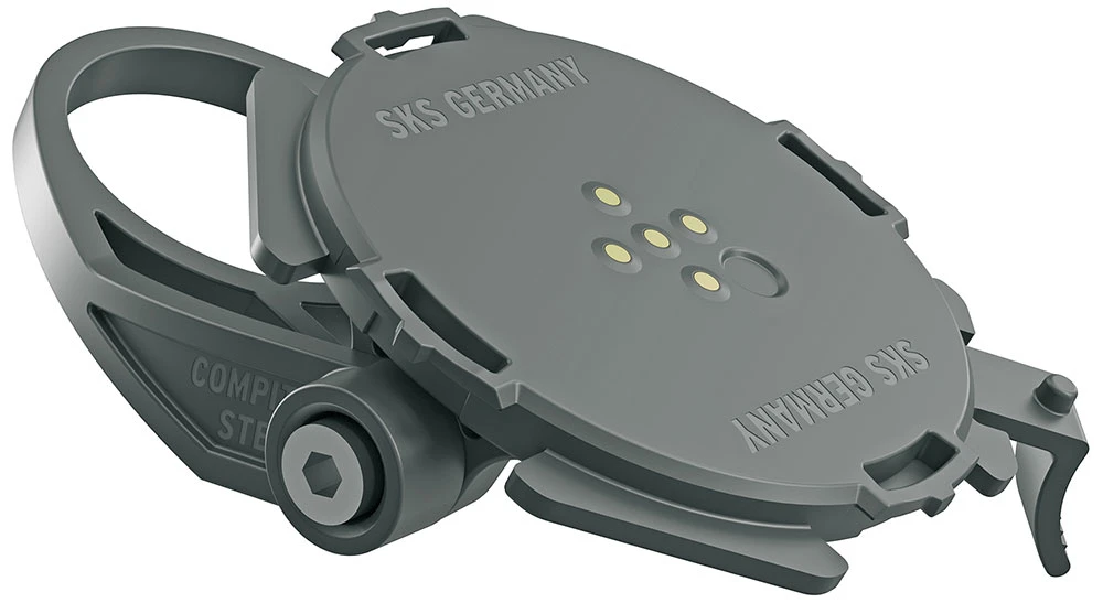Le support de téléphone portable SKS Germany COMPIT STEM à monter sur la potence maintient le téléphone portable fermement et en toute sécurité, même en cas d’utilisation tout-terrain intensive. Le support pour smartphone de haute qualité se monte sous le capuchon de direction existant (Ahead Cap) de la potence, qu’il y ait ou non une partie libre du pivot de fourche. Grâce à la fixation à baïonnette, le téléphone portable se fixe rapidement et facilement en un tour de main – et ce dans les deux sens.