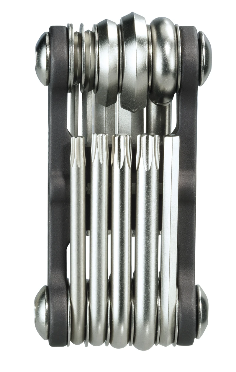 Extrêmement léger et compact, le Mini 10 contient toutes les clés Torx importantes pour pouvoir réparer les défauts des vélos modernes. Un tournevis cruciforme et une clé Allen sont également disponibles pour les réparations et l’entretien des pièces courantes.