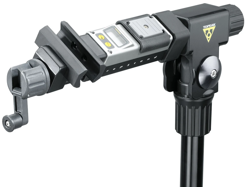 Le PrepStand Pro de Topeak est un support de montage de haute qualité avec une balance numérique intégrée. Conception à trois pieds particulièrement stable, qui peut être pliée pour économiser de l’espace lorsqu’elle n’est pas utilisée ou pour le transport. Mécanisme à manivelle supplémentaire pour un réglage fin et facile de la largeur de serrage.