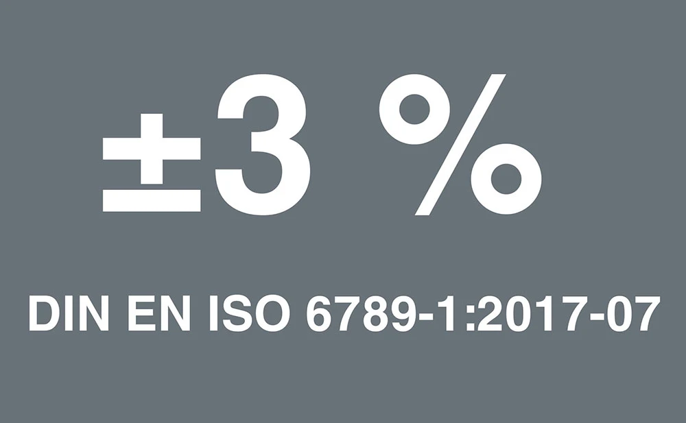 La précision est de ±3 % selon la DIN EN ISO 6789-1:2017-07.